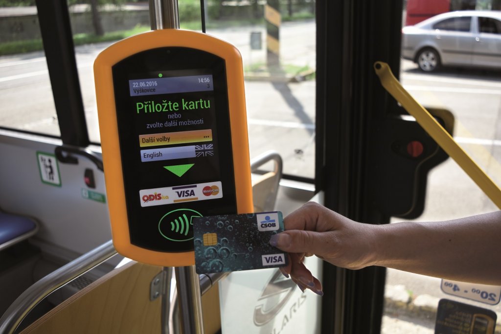 - Cestující nepotřebuje papírovou jízdenku – pouze bezkontaktní platební kartu, kterou přiloží k terminálu při vstupu i výstupu z MHD.